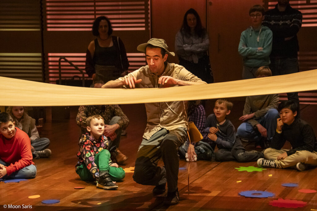 “Sound explorers” is an experiential music-theater piece that invites the audience to connect with surrounding reality in a sensorial way. With sound as the main element, but combining hearing with other senses, the piece will be presented as a playground where all the family members are invited to explore and discover interaction possibilities.